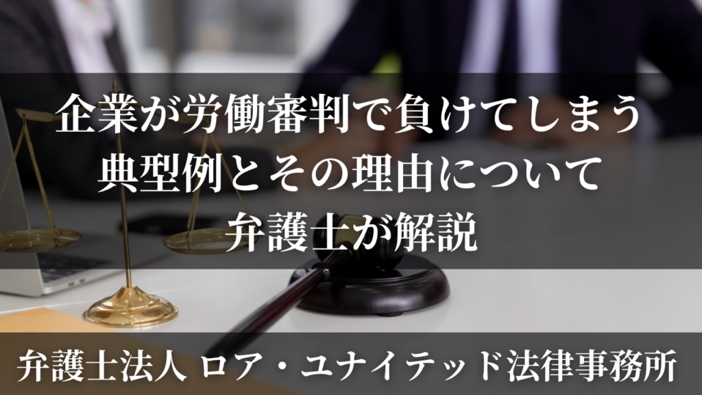 企業が労働審判で負けてしまうケースとして、まず、法的観点からみて、解雇理由に正当性が認められなかったり、未払い賃金請求や慰謝料請求を拒絶する正当な理由が認められない場合が挙げられます。